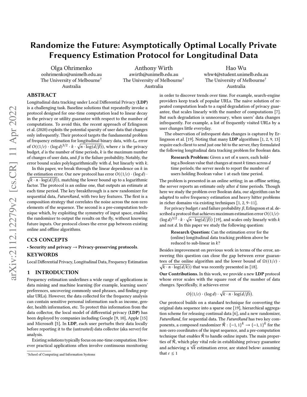 Longitudinal data tracking under Local Differential Privacy (LDP) is a challenging task. Baseline solutions that repeatedly invoke a protocol designed for one-time computation lead to linear decay in the privacy or utility guarantee with respect to the number of computations. To avoid this, the recent approach of Erlingsson et al. (2020) exploits the potential sparsity of user data that changes only infrequently. Their protocol targets the fundamental problem of frequency estimation protocol for longitudinal binary data, with error of , where is the privacy budget, is the number of time periods, is the maximum number of changes of user data, and is the failure probability. Notably, the error bound scales polylogarithmically with , but linearly with . In this paper, we break through the linear dependence on in the estimation error. Our new protocol has error , matching the lower bound up to a logarithmic factor. The protocol is an online one, that outputs an estimate at each time period. The key breakthrough is a new randomizer for sequential data, FutureRand, with two key features. The first is a composition strategy that correlates the noise across the non-zero elements of the sequence. The second is a pre-computation technique which, by exploiting the symmetry of input space, enables the randomizer to output the results on the fly, without knowing future inputs. Our protocol closes the error gap between existing online and offline algorithms.