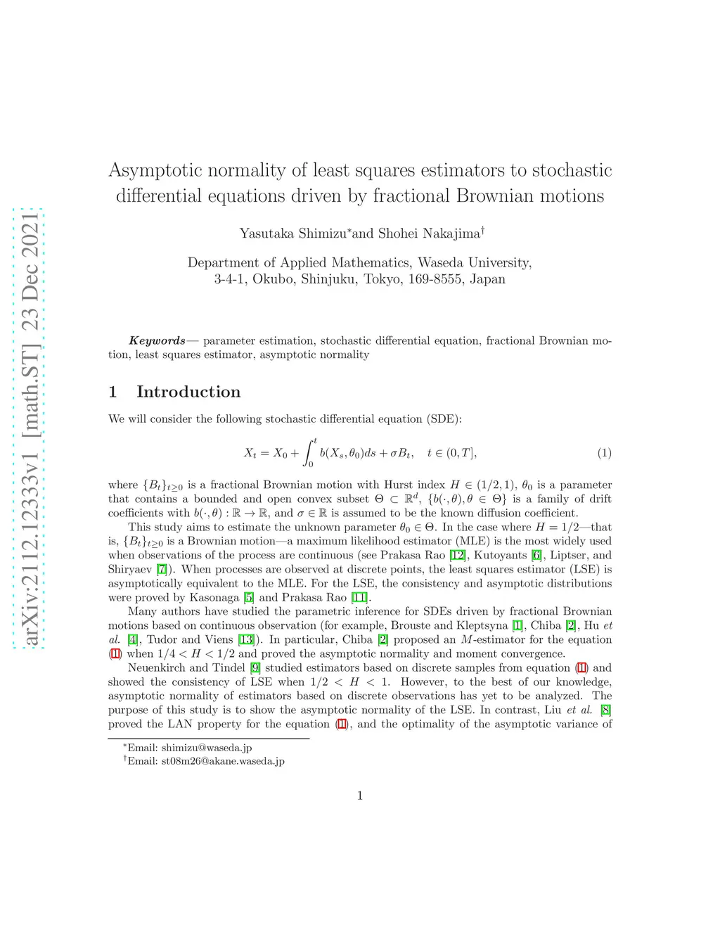 We will consider the following stochastic differential equation (SDE): \begin{equation} X_t=X_0+\int_0^tb(X_s,\theta_0)ds+\sigma B_t,~~~t\in(0,T], \end{equation} where is a fractional Brownian motion with Hurst index , is a parameter that contains a bounded and open convex subset , is a family of drift coefficients with , and is assumed to be the known diffusion coefficient.