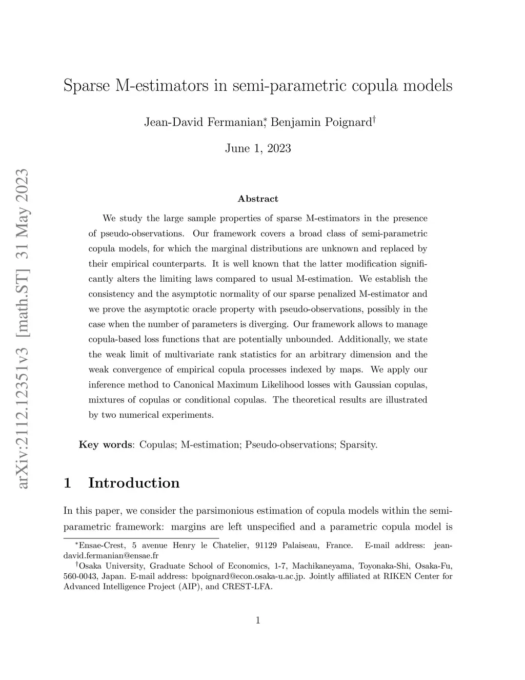 Sparse M-estimators in semi-parametric copula models