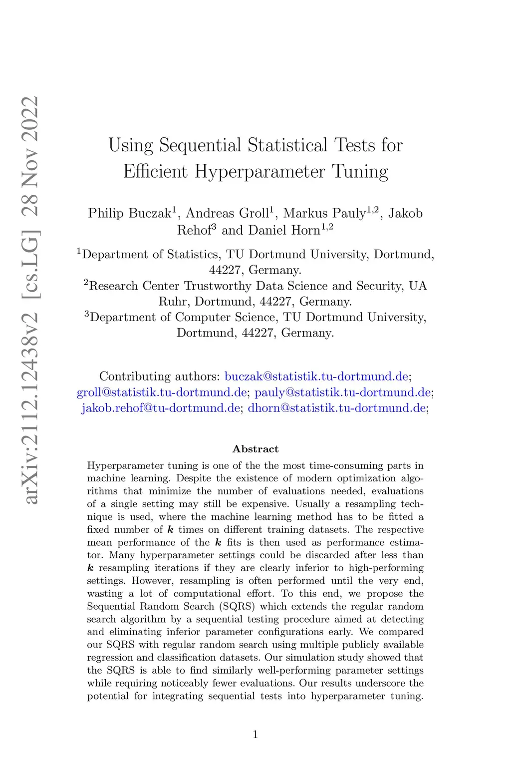 Using Sequential Statistical Tests for Efficient Hyperparameter Tuning