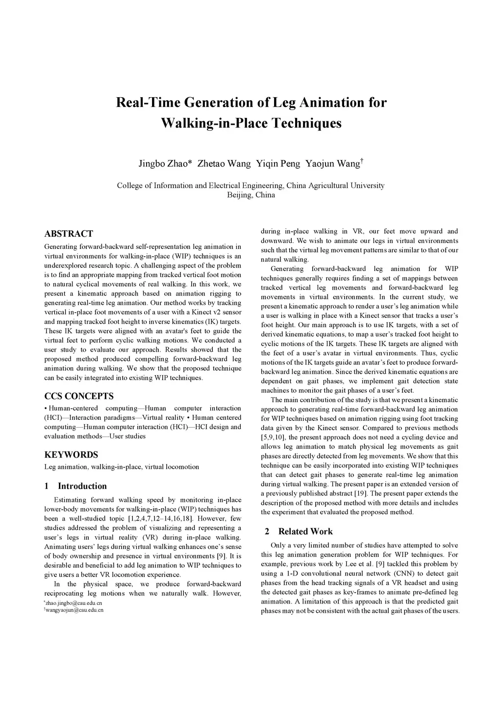 Real-Time Generation of Leg Animation for Walking-in-Place Techniques