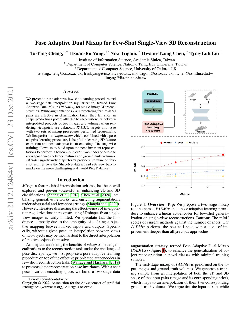 Pose Adaptive Dual Mixup for Few-Shot Single-View 3D Reconstruction