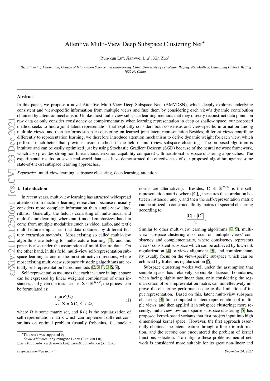 In this paper, we propose a novel Attentive Multi-View Deep Subspace Nets (AMVDSN), which deeply explores underlying consistent and view-specific information from multiple views and fuse them by considering each view's dynamic contribution obtained by attention mechanism. Unlike most multi-view subspace learning methods that they directly reconstruct data points on raw data or only consider consistency or complementarity when learning representation in deep or shallow space, our proposed method seeks to find a joint latent representation that explicitly considers both consensus and view-specific information among multiple views, and then performs subspace clustering on learned joint latent representation.Besides, different views contribute differently to representation learning, we therefore introduce attention mechanism to derive dynamic weight for each view, which performs much better than previous fusion methods in the field of multi-view subspace clustering. The proposed algorithm is intuitive and can be easily optimized just by using Stochastic Gradient Descent (SGD) because of the neural network framework, which also provides strong non-linear characterization capability compared with traditional subspace clustering approaches. The experimental results on seven real-world data sets have demonstrated the effectiveness of our proposed algorithm against some state-of-the-art subspace learning approaches.