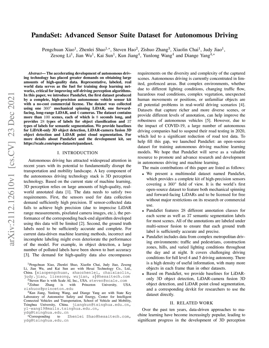 PandaSet: Advanced Sensor Suite Dataset for Autonomous Driving