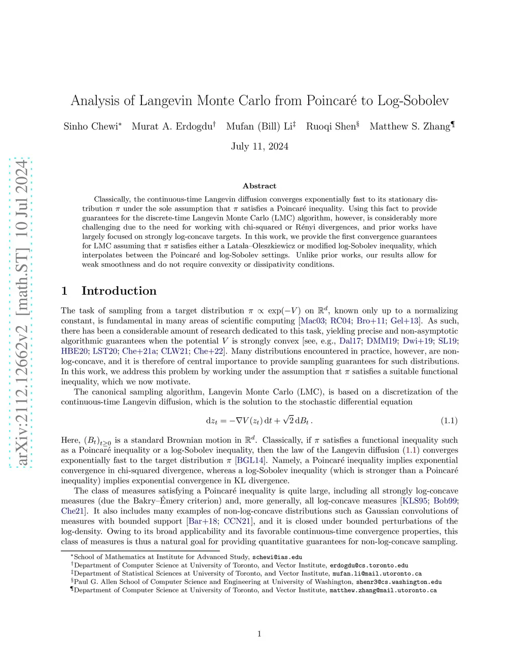 Analysis of Langevin Monte Carlo from Poincaré to Log-Sobolev