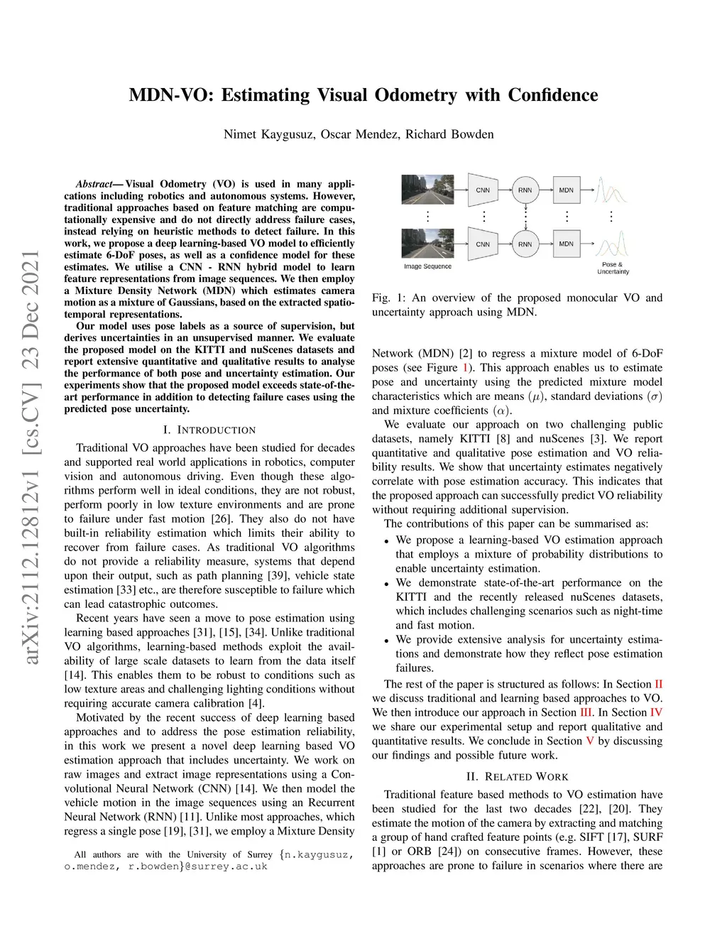 MDN-VO: Estimating Visual Odometry with Confidence