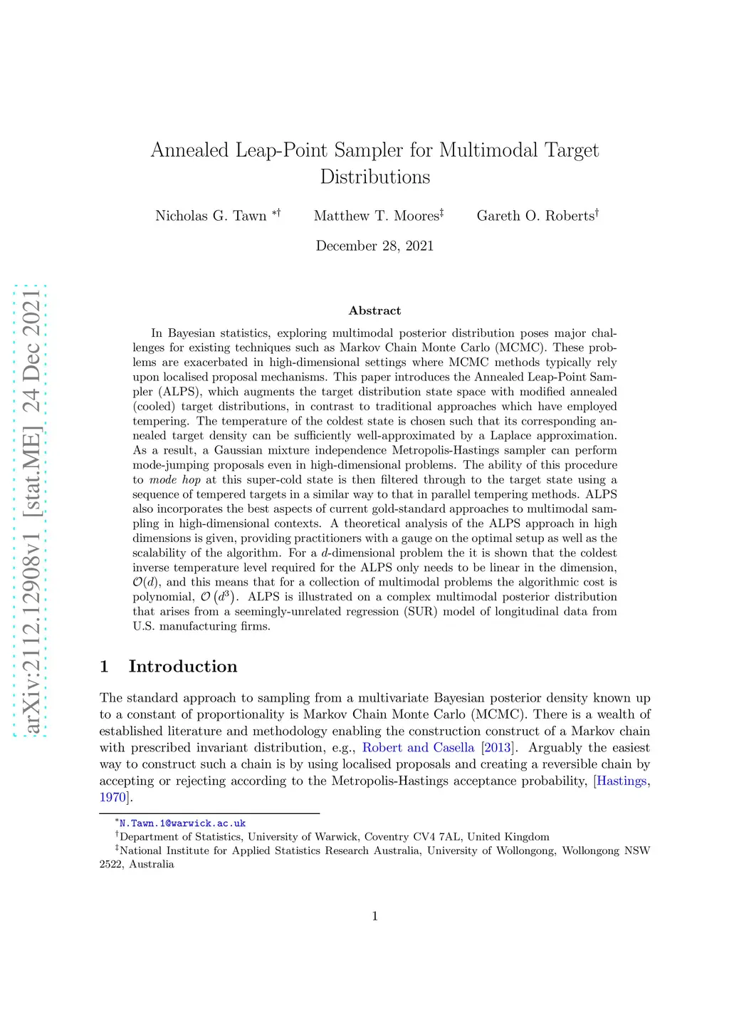 Annealed Leap-Point Sampler for Multimodal Target Distributions