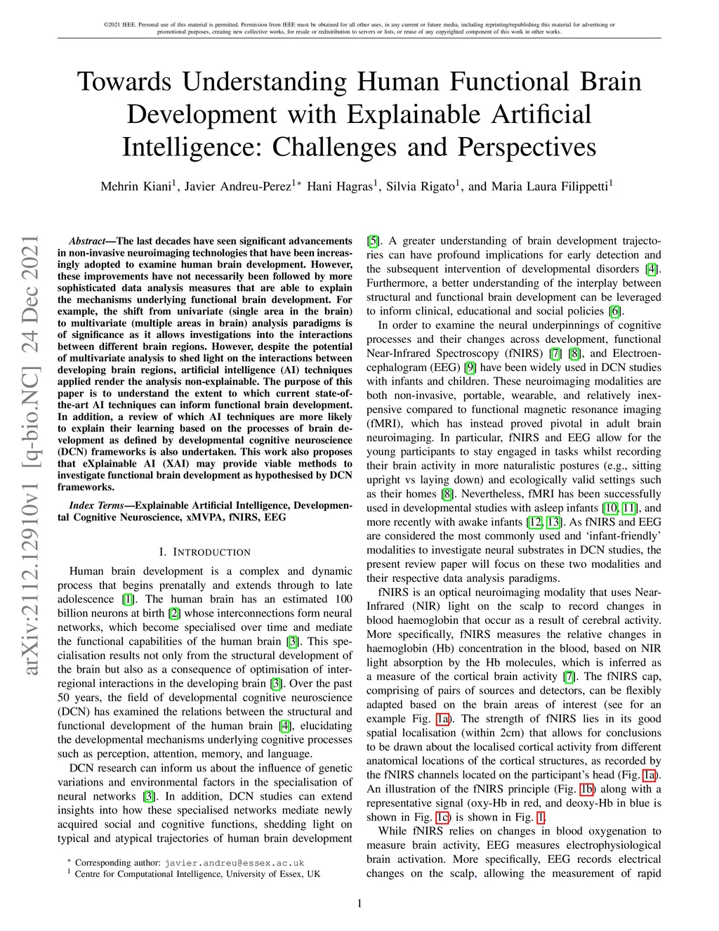 The last decades have seen significant advancements in non-invasive neuroimaging technologies that have been increasingly adopted to examine human brain development. However, these improvements have not necessarily been followed by more sophisticated data analysis measures that are able to explain the mechanisms underlying functional brain development. For example, the shift from univariate (single area in the brain) to multivariate (multiple areas in brain) analysis paradigms is of significance as it allows investigations into the interactions between different brain regions. However, despite the potential of multivariate analysis to shed light on the interactions between developing brain regions, artificial intelligence (AI) techniques applied render the analysis non-explainable. The purpose of this paper is to understand the extent to which current state-of-the-art AI techniques can inform functional brain development. In addition, a review of which AI techniques are more likely to explain their learning based on the processes of brain development as defined by developmental cognitive neuroscience (DCN) frameworks is also undertaken. This work also proposes that eXplainable AI (XAI) may provide viable methods to investigate functional brain development as hypothesised by DCN frameworks.