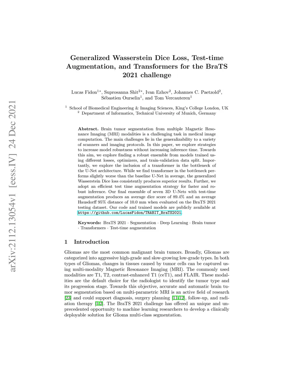Generalized Wasserstein Dice Loss, Test-time Augmentation, and
