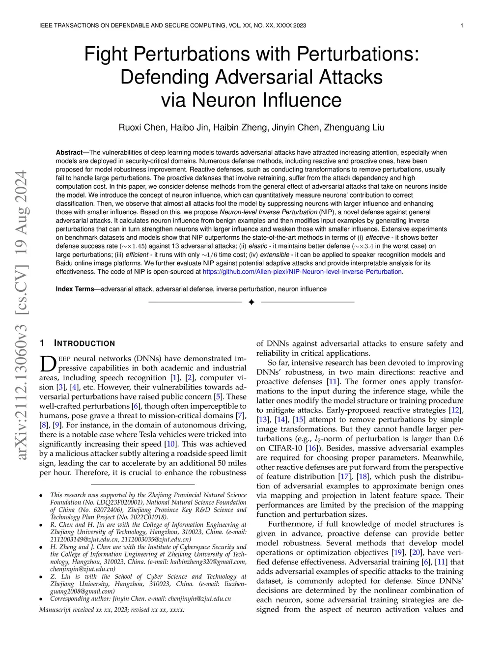 NIP: Neuron-level Inverse Perturbation Against Adversarial Attacks