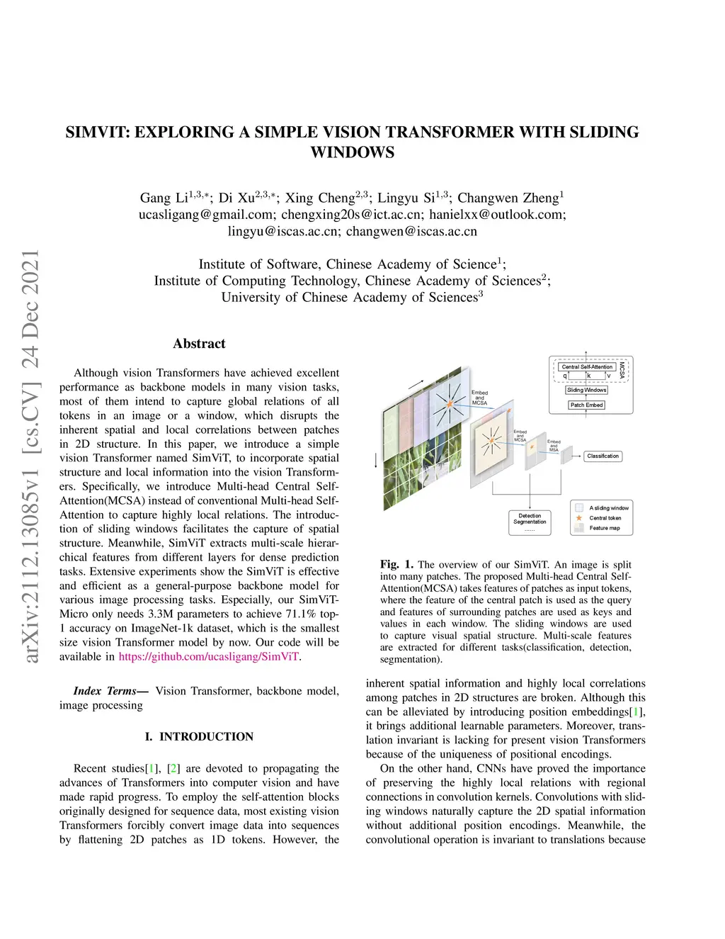 SimViT: Exploring a Simple Vision Transformer with sliding windows