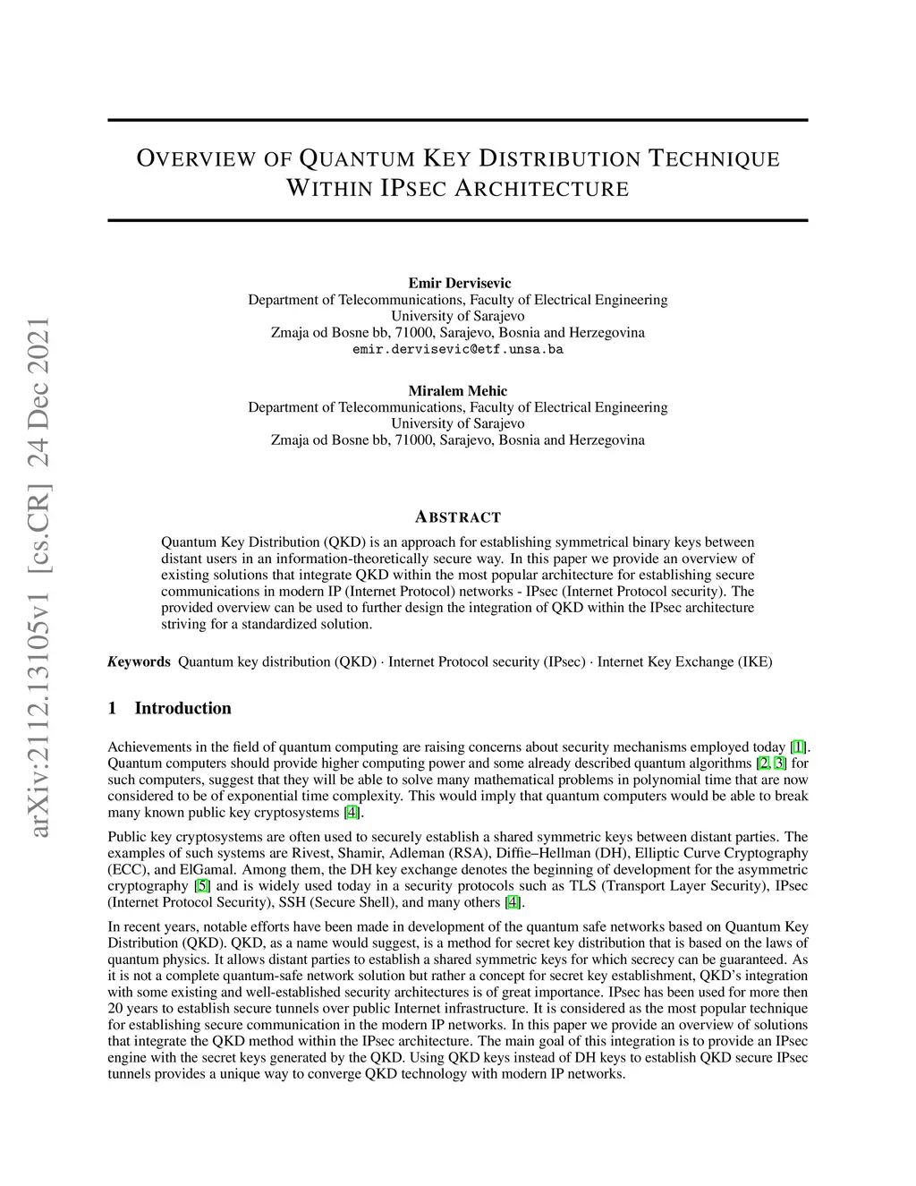 Overview of Quantum Key Distribution Technique within IPsec Architecture