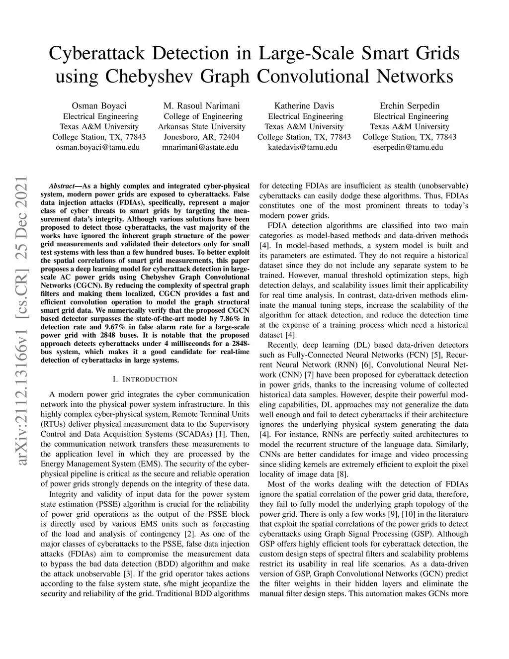 Cyberattack Detection in Large-Scale Smart Grids using Chebyshev Graph