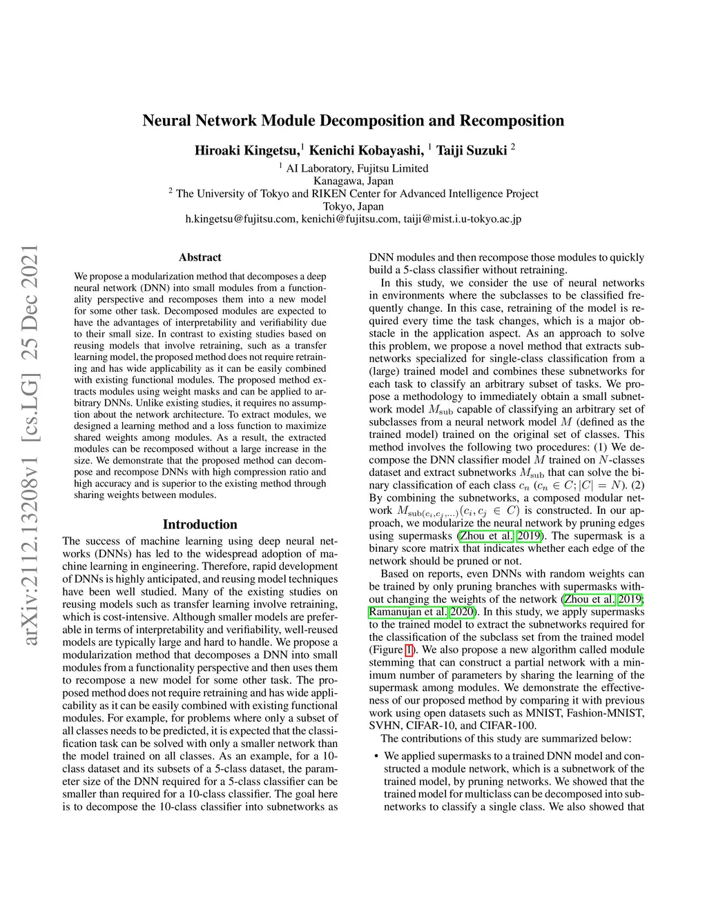 Neural Network Module Decomposition and Recomposition