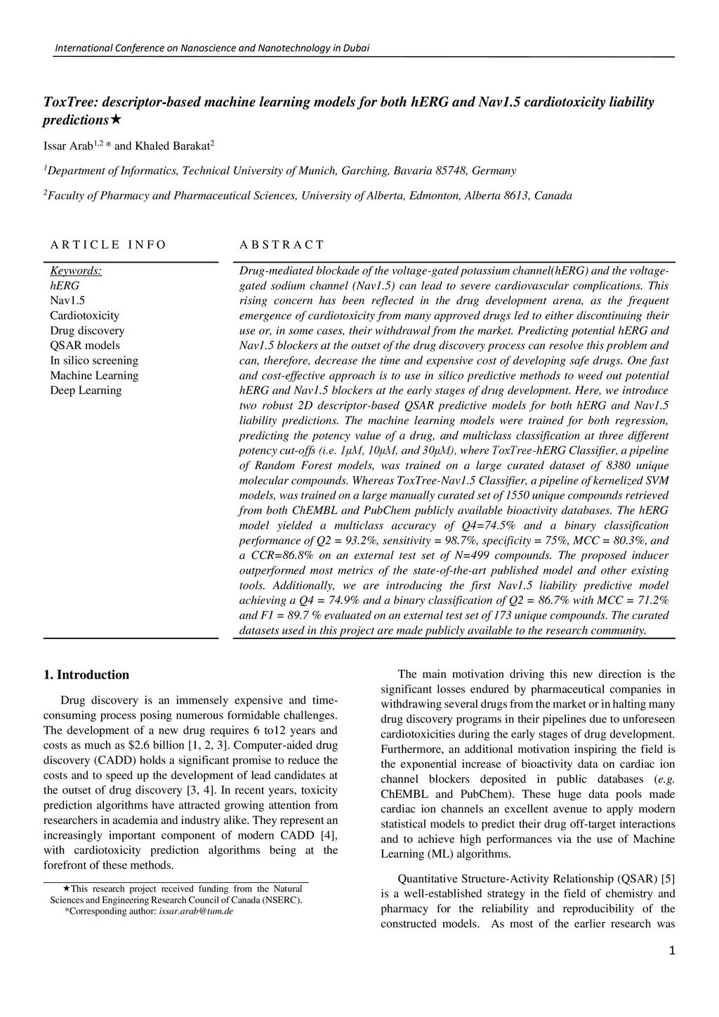 Nav1.5 cardiotoxicity liability predictions