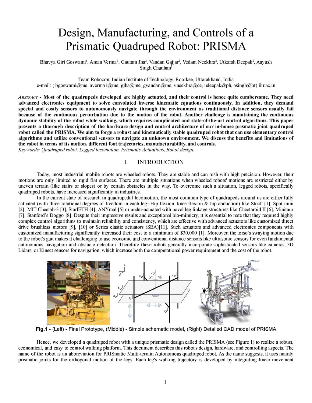 Design, Manufacturing, and Controls of a Prismatic Quadruped Robot: