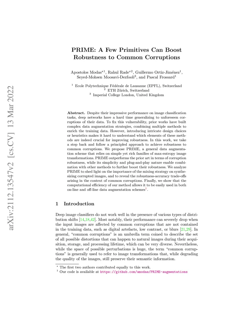 Despite their impressive performance on image classification tasks, deep networks have a hard time generalizing to unforeseen corruptions of their data. To fix this vulnerability, prior works have built complex data augmentation strategies, combining multiple methods to enrich the training data. However, introducing intricate design choices or heuristics makes it hard to understand which elements of these methods are indeed crucial for improving robustness. In this work, we take a step back and follow a principled approach to achieve robustness to common corruptions. We propose PRIME, a general data augmentation scheme that relies on simple yet rich families of max-entropy image transformations. PRIME outperforms the prior art in terms of corruption robustness, while its simplicity and plug-and-play nature enable combination with other methods to further boost their robustness. We analyze PRIME to shed light on the importance of the mixing strategy on synthesizing corrupted images, and to reveal the robustness-accuracy trade-offs arising in the context of common corruptions. Finally, we show that the computational efficiency of our method allows it to be easily used in both on-line and off-line data augmentation schemes.