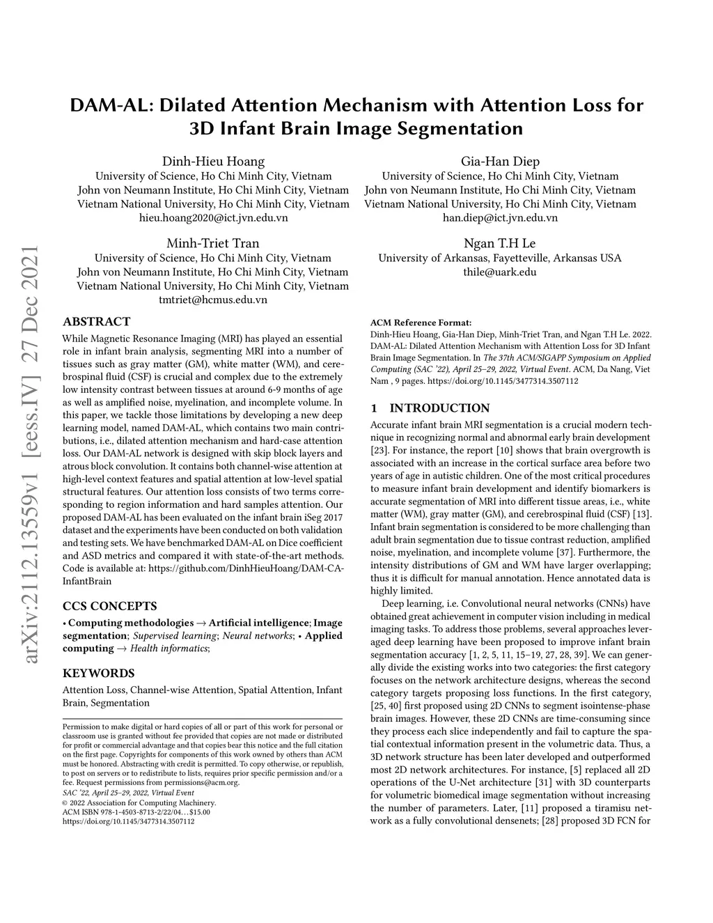DAM-AL: Dilated Attention Mechanism with Attention Loss for 3D Infant