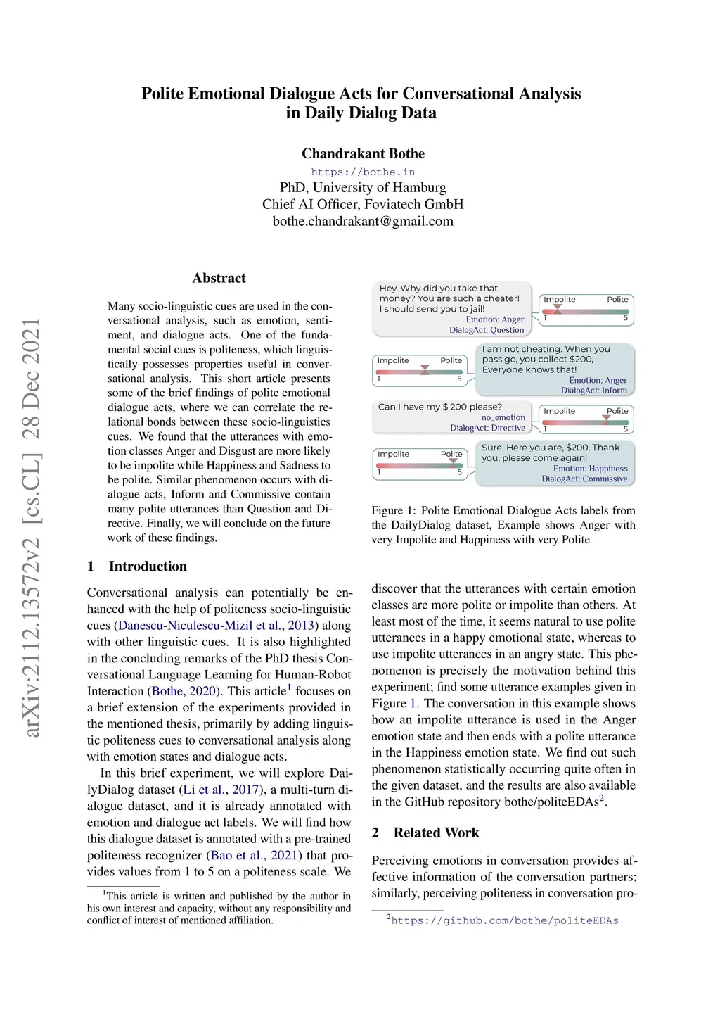 Polite Emotional Dialogue Acts for Conversational Analysis in Daily