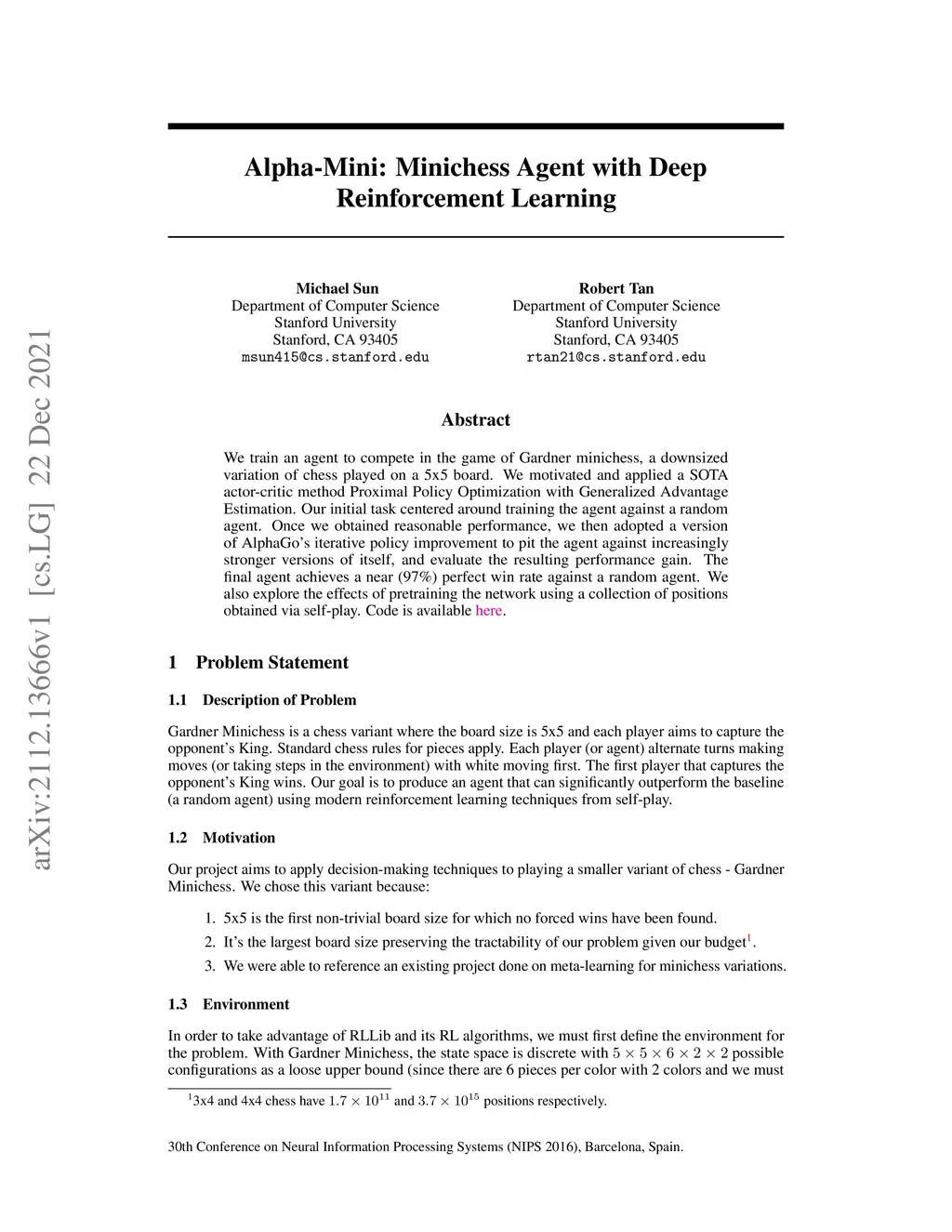 Alpha-Mini: Minichess Agent with Deep Reinforcement Learning