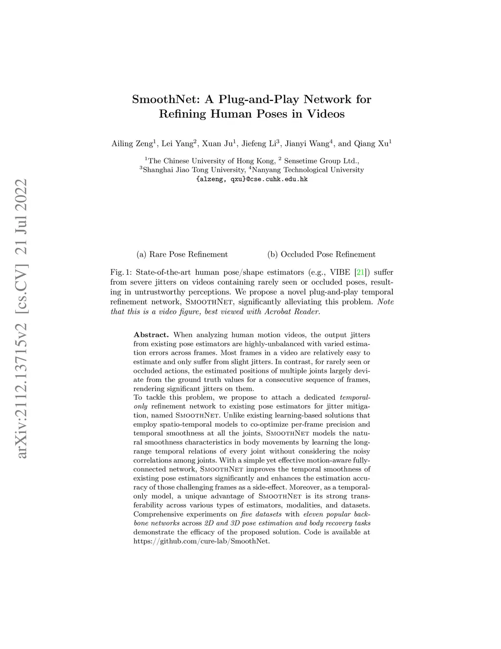 SmoothNet: A Plug-and-Play Network for Refining Human Poses in Videos