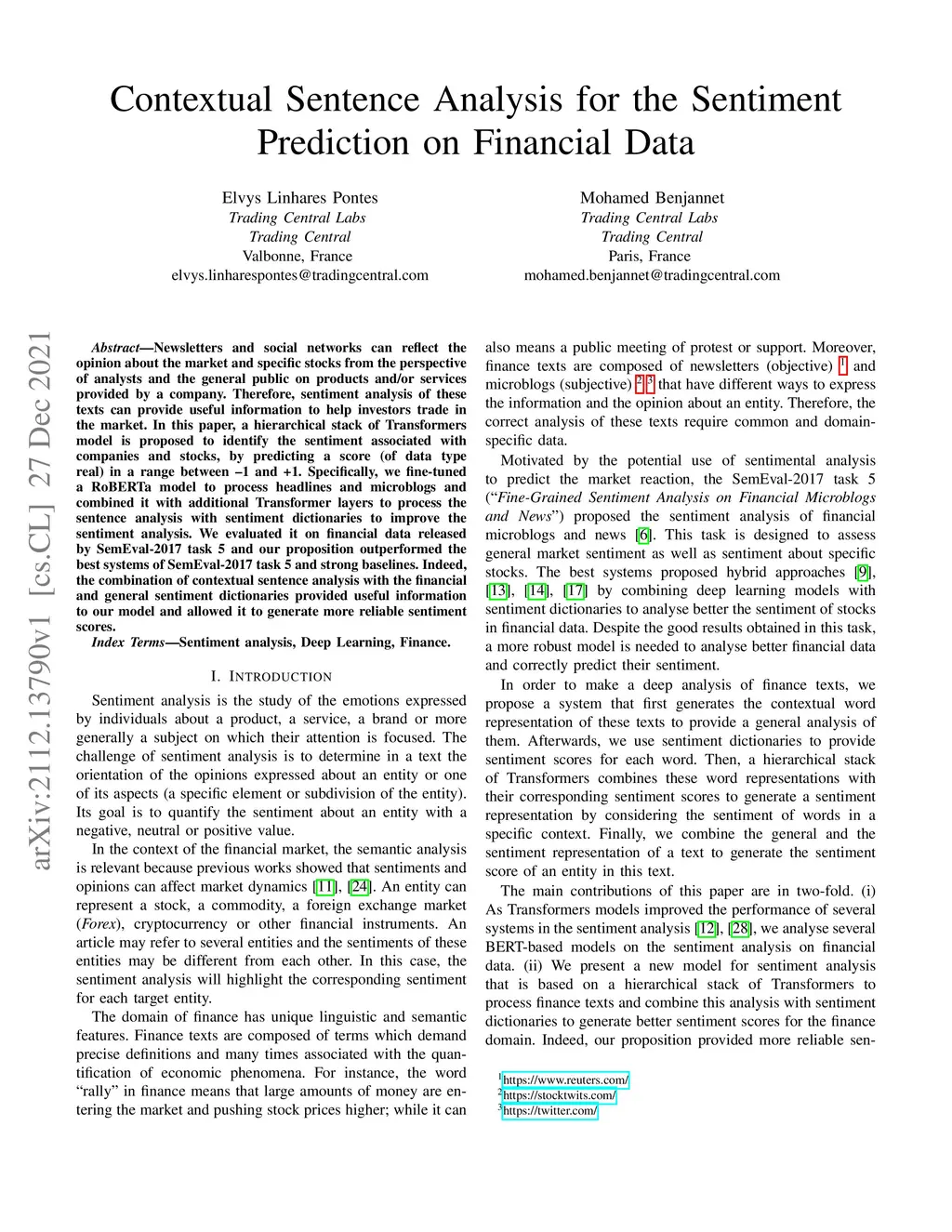 Contextual Sentence Analysis for the Sentiment Prediction on Financial