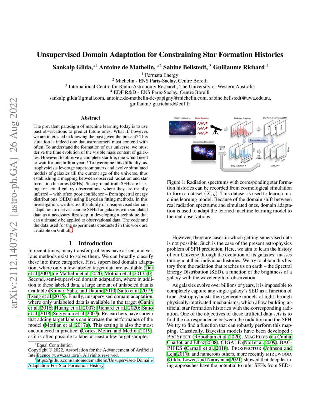 The prevalent paradigm of machine learning today is to use past observations to predict future ones. What if, however, we are interested in knowing the past given the present? This situation is indeed one that astronomers must contend with often. To understand the formation of our universe, we must derive the time evolution of the visible mass content of galaxies. However, to observe a complete star life, one would need to wait for one billion years! To overcome this difficulty, astrophysicists leverage supercomputers and evolve simulated models of galaxies till the current age of the universe, thus establishing a mapping between observed radiation and star formation histories (SFHs). Such ground-truth SFHs are lacking for actual galaxy observations, where they are usually inferred -- with often poor confidence -- from spectral energy distributions (SEDs) using Bayesian fitting methods. In this investigation, we discuss the ability of unsupervised domain adaptation to derive accurate SFHs for galaxies with simulated data as a necessary first step in developing a technique that can ultimately be applied to observational data.