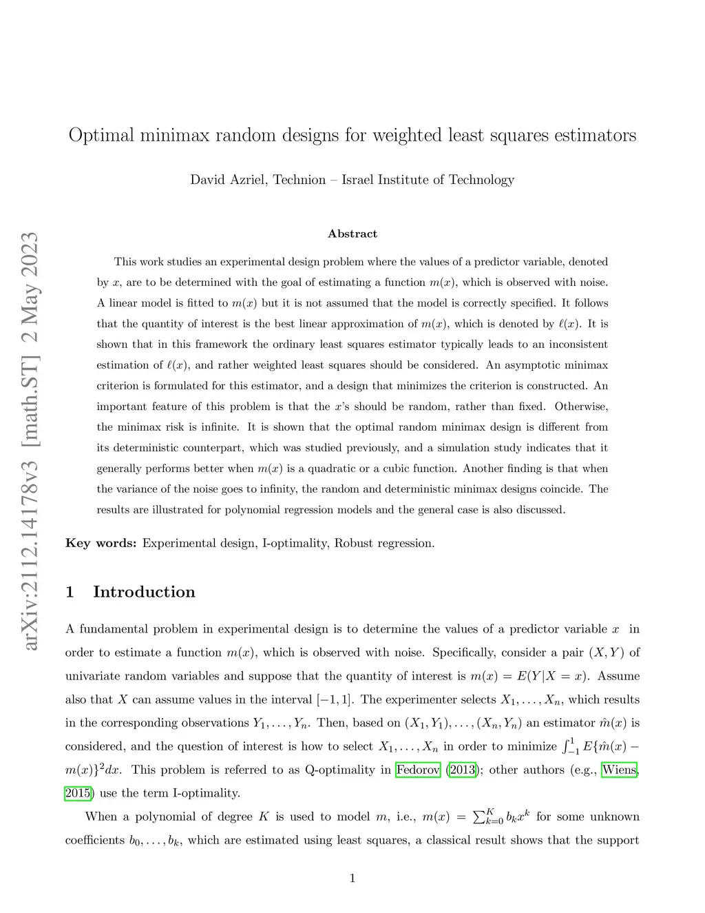 Optimal minimax random designs for weighted least squares estimators