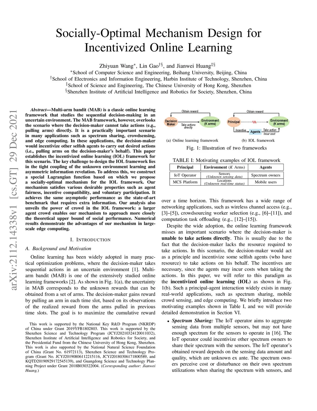 Multi-arm bandit (MAB) is a classic online learning framework that studies the sequential decision-making in an uncertain environment. The MAB framework, however, overlooks the scenario where the decision-maker cannot take actions (e.g., pulling arms) directly. It is a practically important scenario in many applications such as spectrum sharing, crowdsensing, and edge computing. In these applications, the decision-maker would incentivize other selfish agents to carry out desired actions (i.e., pulling arms on the decision-maker's behalf). This paper establishes the incentivized online learning (IOL) framework for this scenario. The key challenge to design the IOL framework lies in the tight coupling of the unknown environment learning and asymmetric information revelation. To address this, we construct a special Lagrangian function based on which we propose a socially-optimal mechanism for the IOL framework. Our mechanism satisfies various desirable properties such as agent fairness, incentive compatibility, and voluntary participation. It achieves the same asymptotic performance as the state-of-art benchmark that requires extra information. Our analysis also unveils the power of crowd in the IOL framework: a larger agent crowd enables our mechanism to approach more closely the theoretical upper bound of social performance. Numerical results demonstrate the advantages of our mechanism in large-scale edge computing.
