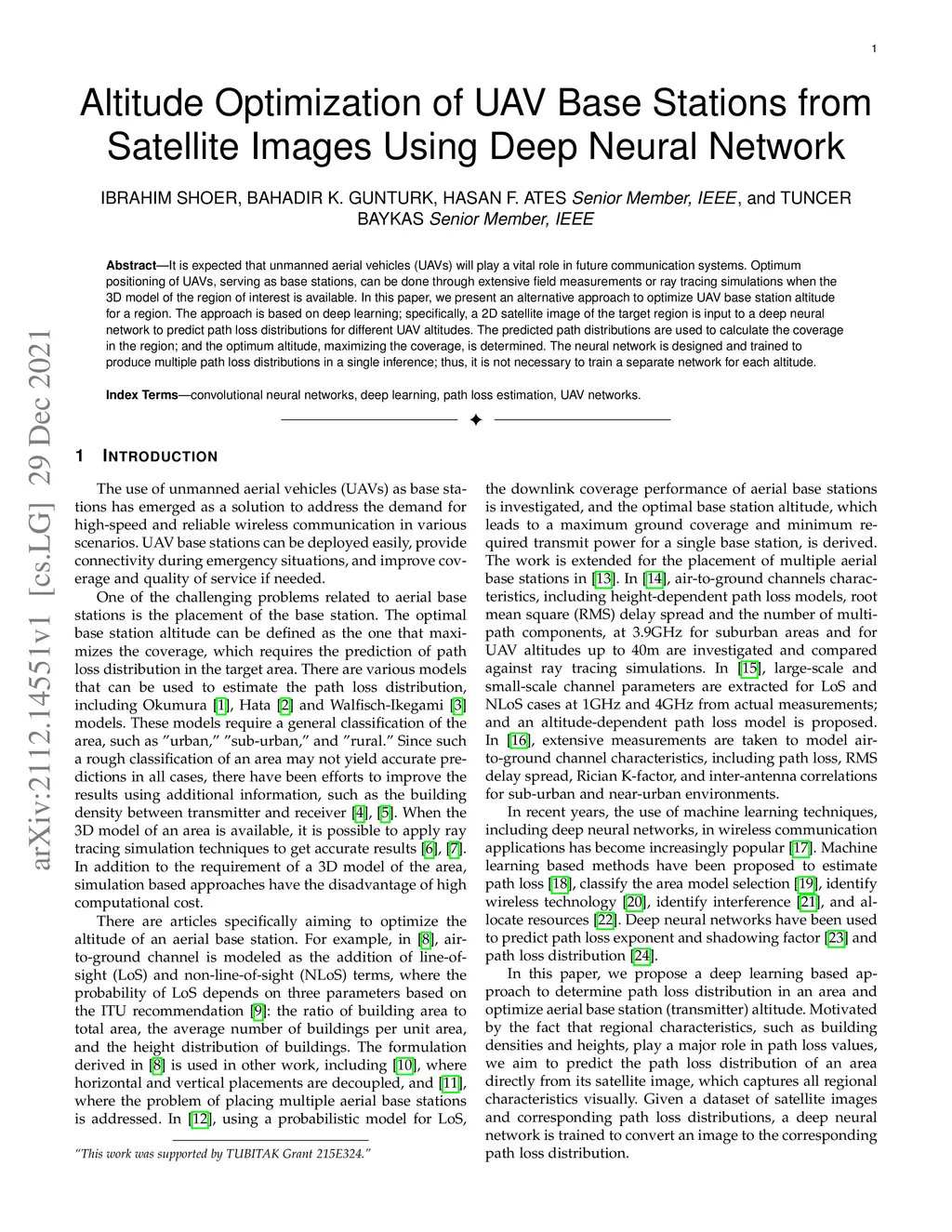 It is expected that unmanned aerial vehicles (UAVs) will play a vital role in future communication systems. Optimum positioning of UAVs, serving as base stations, can be done through extensive field measurements or ray tracing simulations when the 3D model of the region of interest is available. In this paper, we present an alternative approach to optimize UAV base station altitude for a region. The approach is based on deep learning; specifically, a 2D satellite image of the target region is input to a deep neural network to predict path loss distributions for different UAV altitudes. The predicted path distributions are used to calculate the coverage in the region; and the optimum altitude, maximizing the coverage, is determined. The neural network is designed and trained to produce multiple path loss distributions in a single inference; thus, it is not necessary to train a separate network for each altitude.