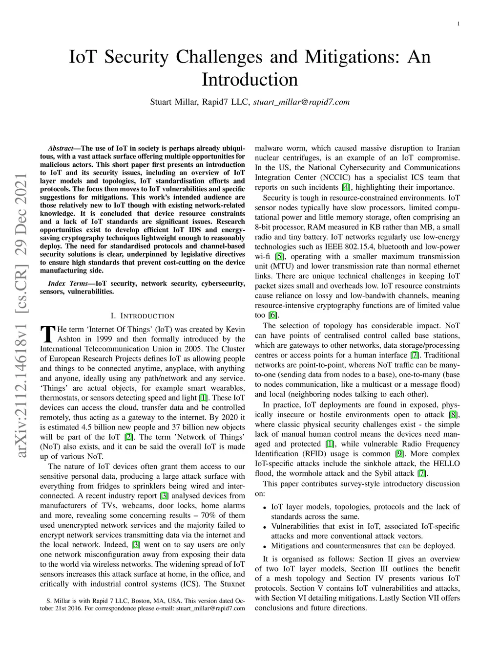 IoT Security Challenges and Mitigations: An Introduction