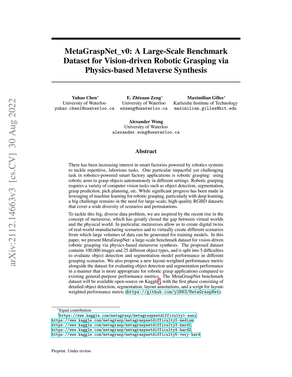 MetaGraspNet_v0: A Large-Scale Benchmark Dataset for Vision-driven