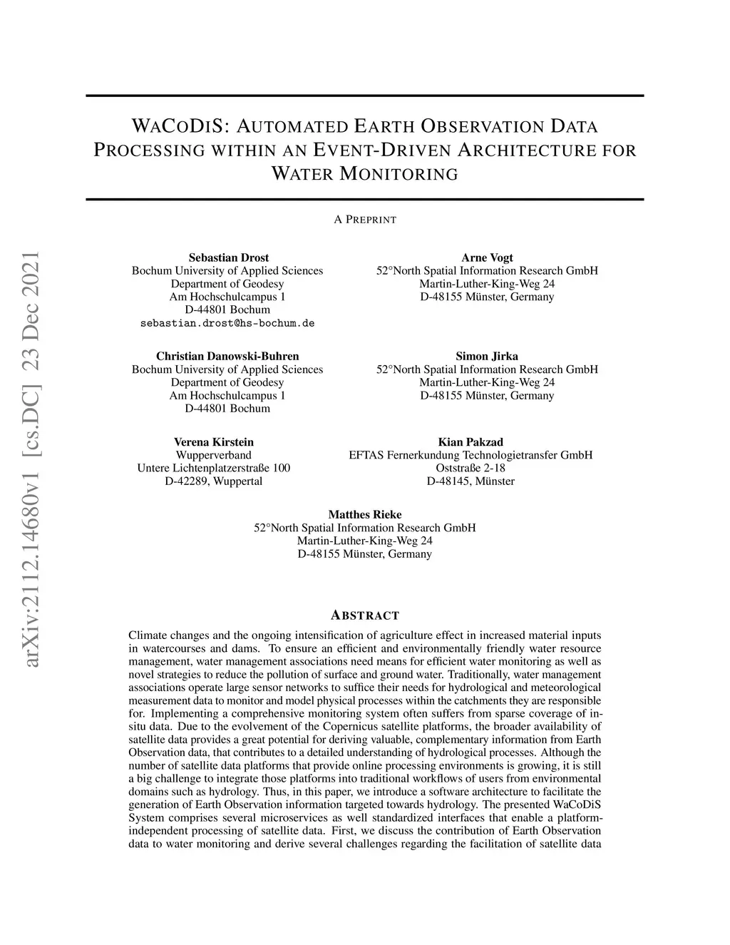 WaCoDiS: Automated Earth Observation Data Processing within an