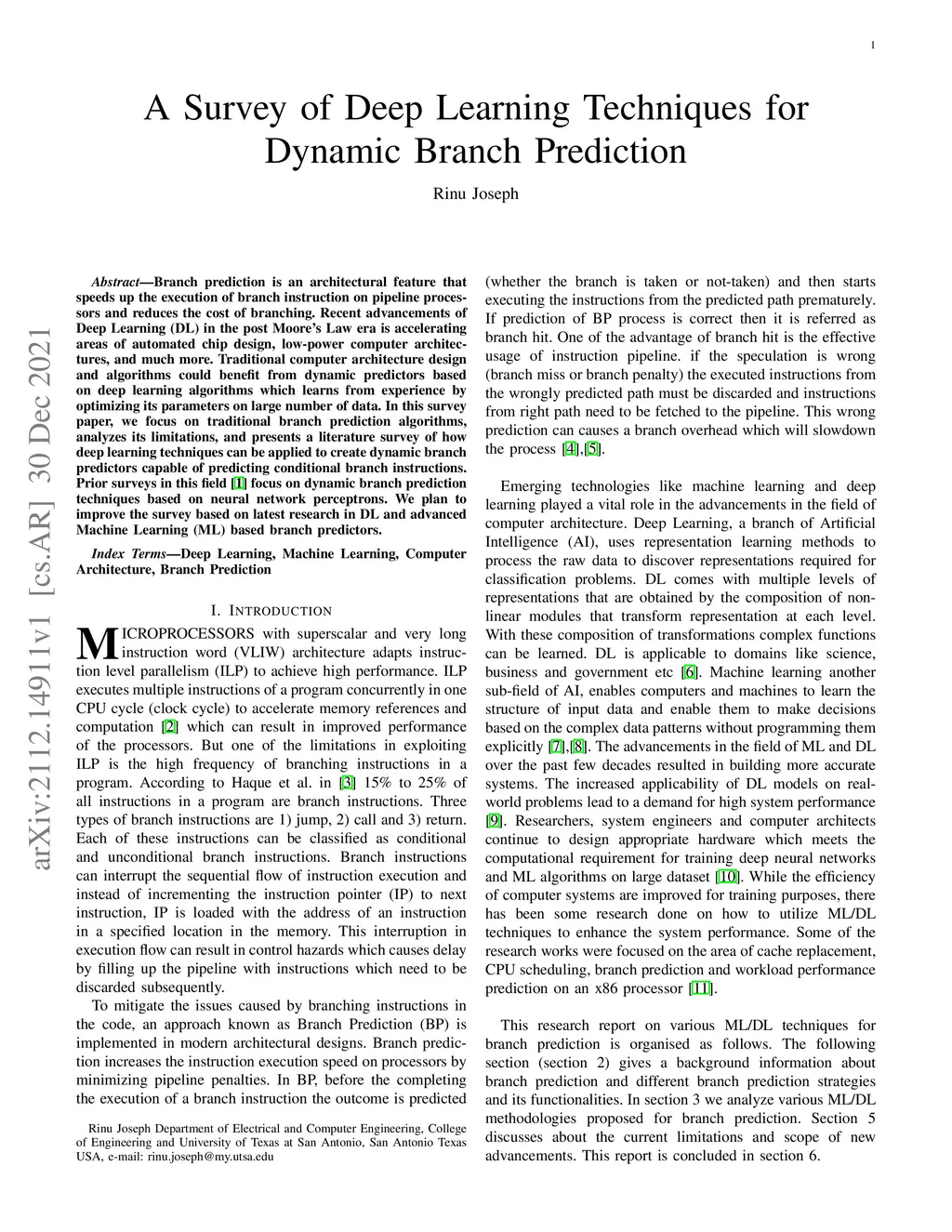 A Survey of Deep Learning Techniques for Dynamic Branch Prediction