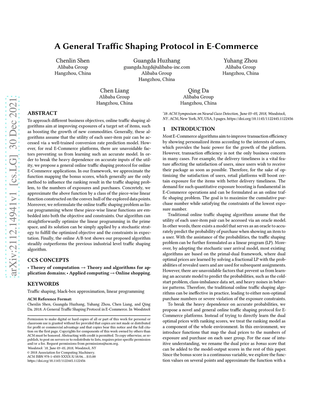 To approach different business objectives, online traffic shaping algorithms aim at improving exposures of a target set of items, such as boosting the growth of new commodities. Generally, these algorithms assume that the utility of each user-item pair can be accessed via a well-trained conversion rate prediction model. However, for real E-Commerce platforms, there are unavoidable factors preventing us from learning such an accurate model. In order to break the heavy dependence on accurate inputs of the utility, we propose a general online traffic shaping protocol for online E-Commerce applications. In our framework, we approximate the function mapping the bonus scores, which generally are the only method to influence the ranking result in the traffic shaping problem, to the numbers of exposures and purchases. Concretely, we approximate the above function by a class of the piece-wise linear function constructed on the convex hull of the explored data points. Moreover, we reformulate the online traffic shaping problem as linear programming where these piece-wise linear functions are embedded into both the objective and constraints. Our algorithm can straightforwardly optimize the linear programming in the prime space, and its solution can be simply applied by a stochastic strategy to fulfill the optimized objective and the constraints in expectation. Finally, the online A/B test shows our proposed algorithm steadily outperforms the previous industrial level traffic shaping algorithm.