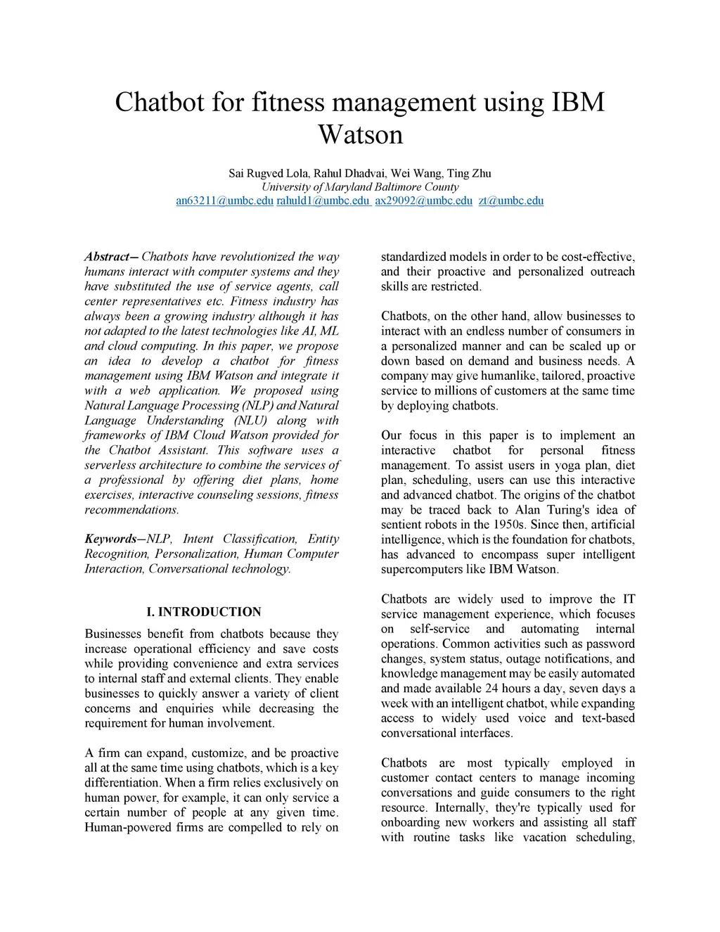 Chatbots have revolutionized the way humans interact with computer systems and they have substituted the use of service agents, call-center representatives etc. Fitness industry has always been a growing industry although it has not adapted to the latest technologies like AI, ML and cloud computing. In this paper, we propose an idea to develop a chatbot for fitness management using IBM Watson and integrate it with a web application. We proposed using Natural Language Processing (NLP) and Natural Language Understanding (NLU) along with frameworks of IBM Cloud Watson provided for the Chatbot Assistant. This software uses a serverless architecture to combine the services of a professional by offering diet plans, home exercises, interactive counseling sessions, fitness recommendations.