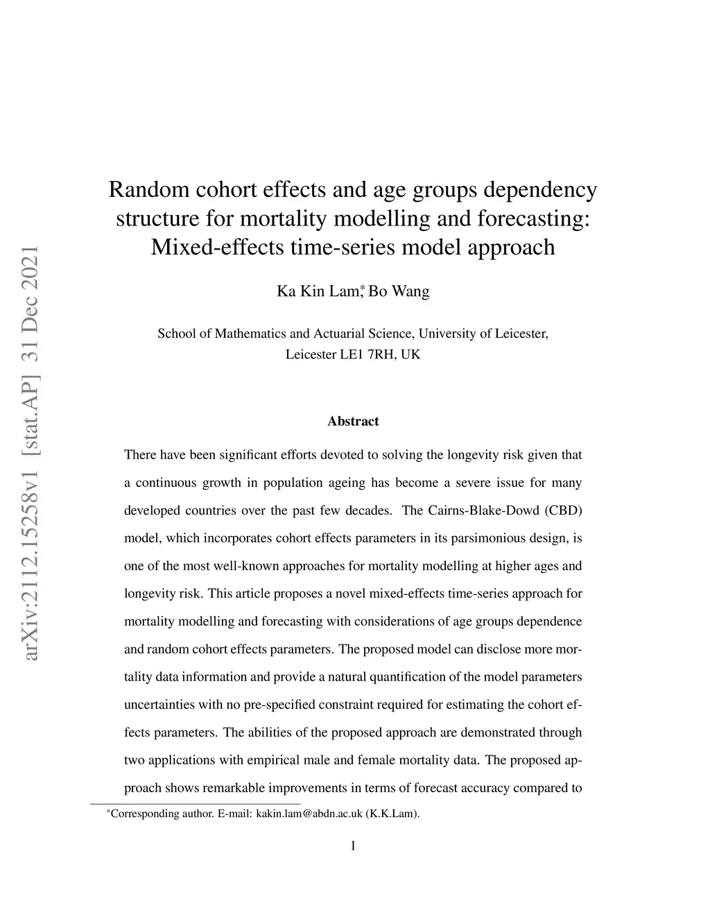 There have been significant efforts devoted to solving the longevity risk given that a continuous growth in population ageing has become a severe issue for many developed countries over the past few decades. The Cairns-Blake-Dowd (CBD) model, which incorporates cohort effects parameters in its parsimonious design, is one of the most well-known approaches for mortality modelling at higher ages and longevity risk. This article proposes a novel mixed-effects time-series approach for mortality modelling and forecasting with considerations of age groups dependence and random cohort effects parameters. The proposed model can disclose more mortality data information and provide a natural quantification of the model parameters uncertainties with no pre-specified constraint required for estimating the cohort effects parameters. The abilities of the proposed approach are demonstrated through two applications with empirical male and female mortality data. The proposed approach shows remarkable improvements in terms of forecast accuracy compared to the CBD model in the short-, mid-and long-term forecasting using mortality data of several developed countries in the numerical examples.