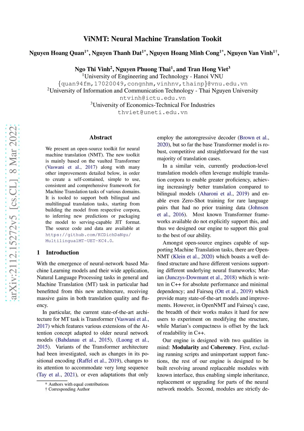 ViNMT: Neural Machine Translation Toolkit