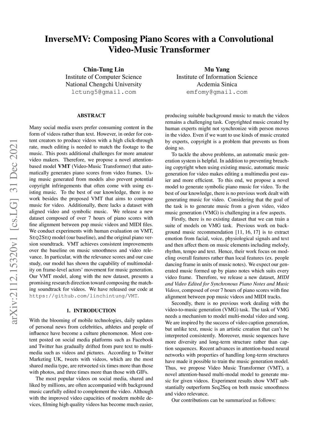 InverseMV: Composing Piano Scores with a Convolutional Video-Music