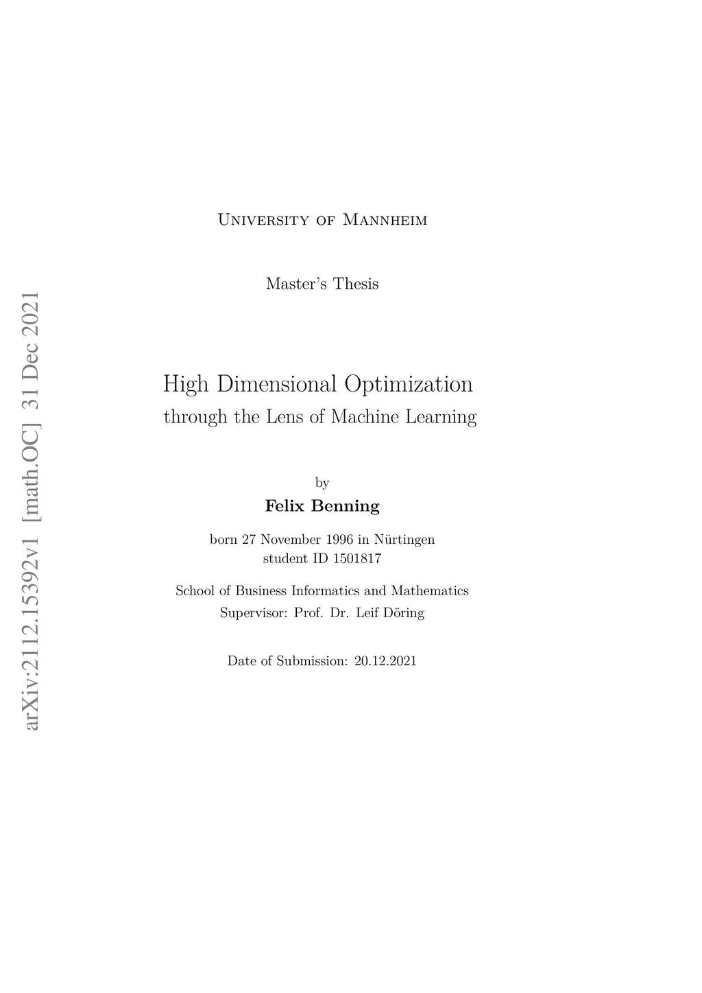 This thesis reviews numerical optimization methods with machine learning problems in mind. Since machine learning models are highly parametrized, we focus on methods suited for high dimensional optimization. We build intuition on quadratic models to figure out which methods are suited for non-convex optimization, and develop convergence proofs on convex functions for this selection of methods. With this theoretical foundation for stochastic gradient descent and momentum methods, we try to explain why the methods used commonly in the machine learning field are so successful. Besides explaining successful heuristics, the last chapter also provides a less extensive review of more theoretical methods, which are not quite as popular in practice. So in some sense this work attempts to answer the question: Why are the default Tensorflow optimizers included in the defaults?