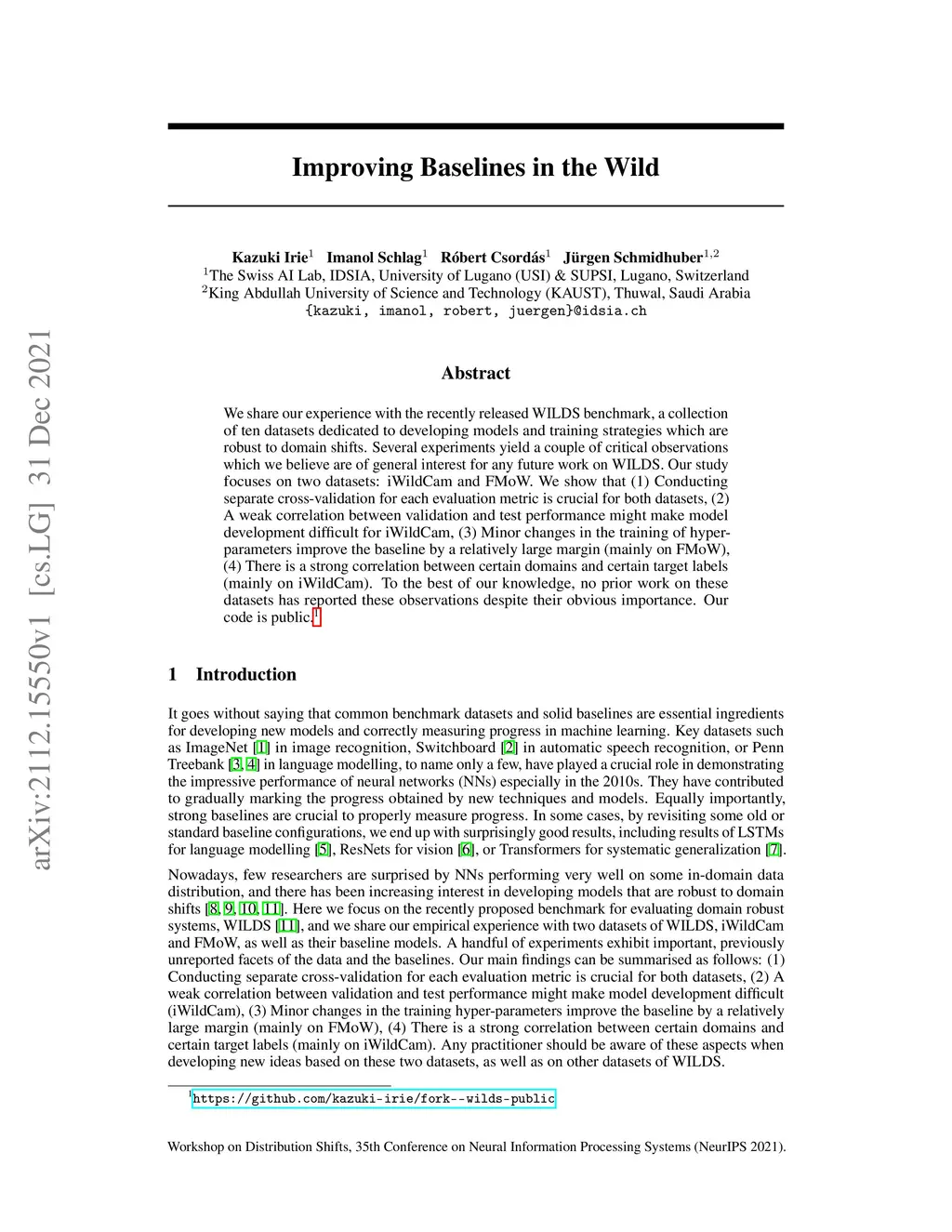 We share our experience with the recently released WILDS benchmark, a collection of ten datasets dedicated to developing models and training strategies which are robust to domain shifts. Several experiments yield a couple of critical observations which we believe are of general interest for any future work on WILDS. Our study focuses on two datasets: iWildCam and FMoW. We show that (1) Conducting separate cross-validation for each evaluation metric is crucial for both datasets, (2) A weak correlation between validation and test performance might make model development difficult for iWildCam, (3) Minor changes in the training of hyper-parameters improve the baseline by a relatively large margin (mainly on FMoW), (4) There is a strong correlation between certain domains and certain target labels (mainly on iWildCam). To the best of our knowledge, no prior work on these datasets has reported these observations despite their obvious importance. Our code is public.