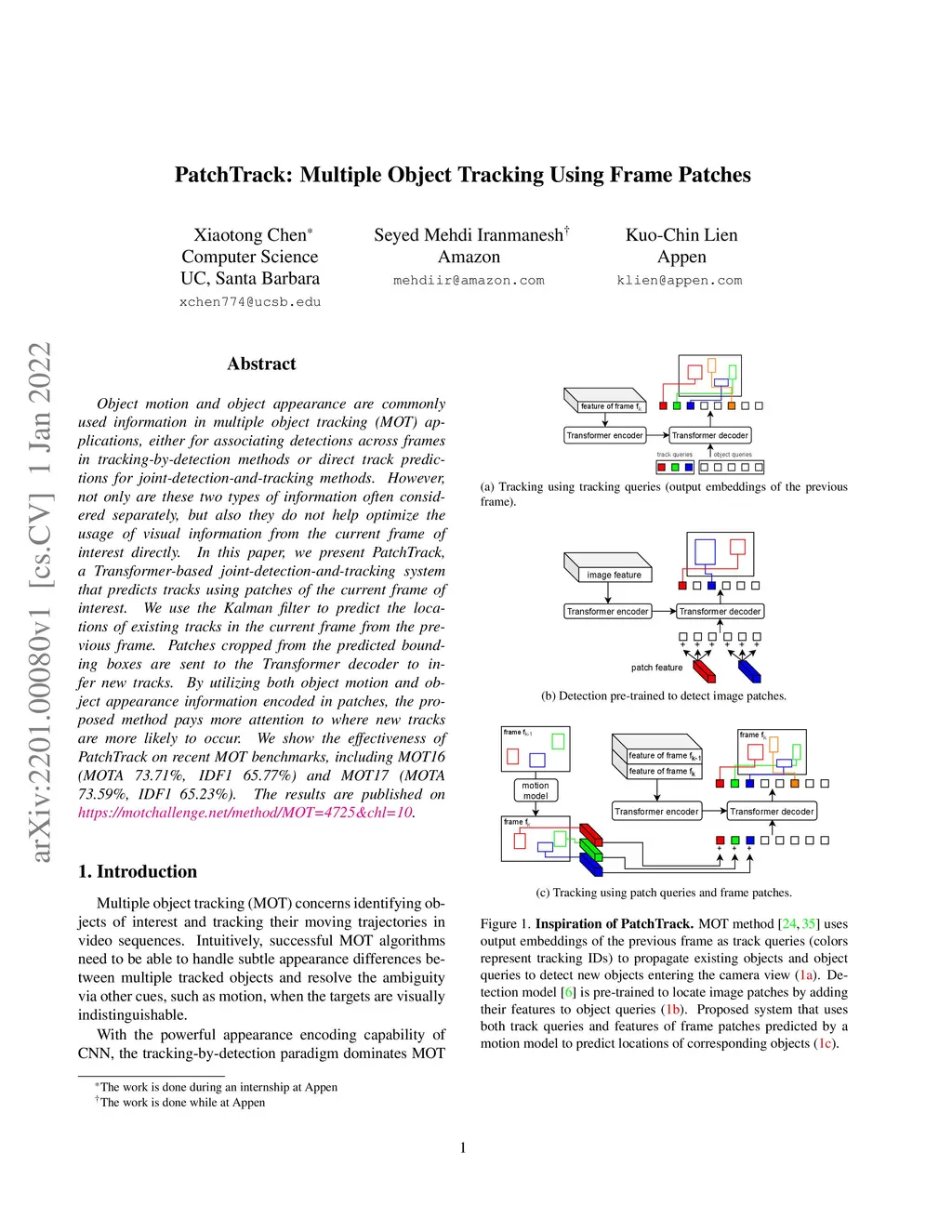 PatchTrack: Multiple Object Tracking Using Frame Patches