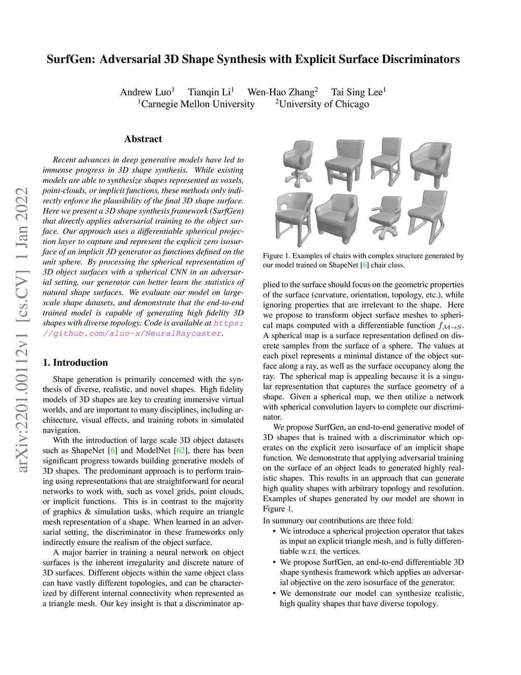 SurfGen: Adversarial 3D Shape Synthesis with Explicit Surface