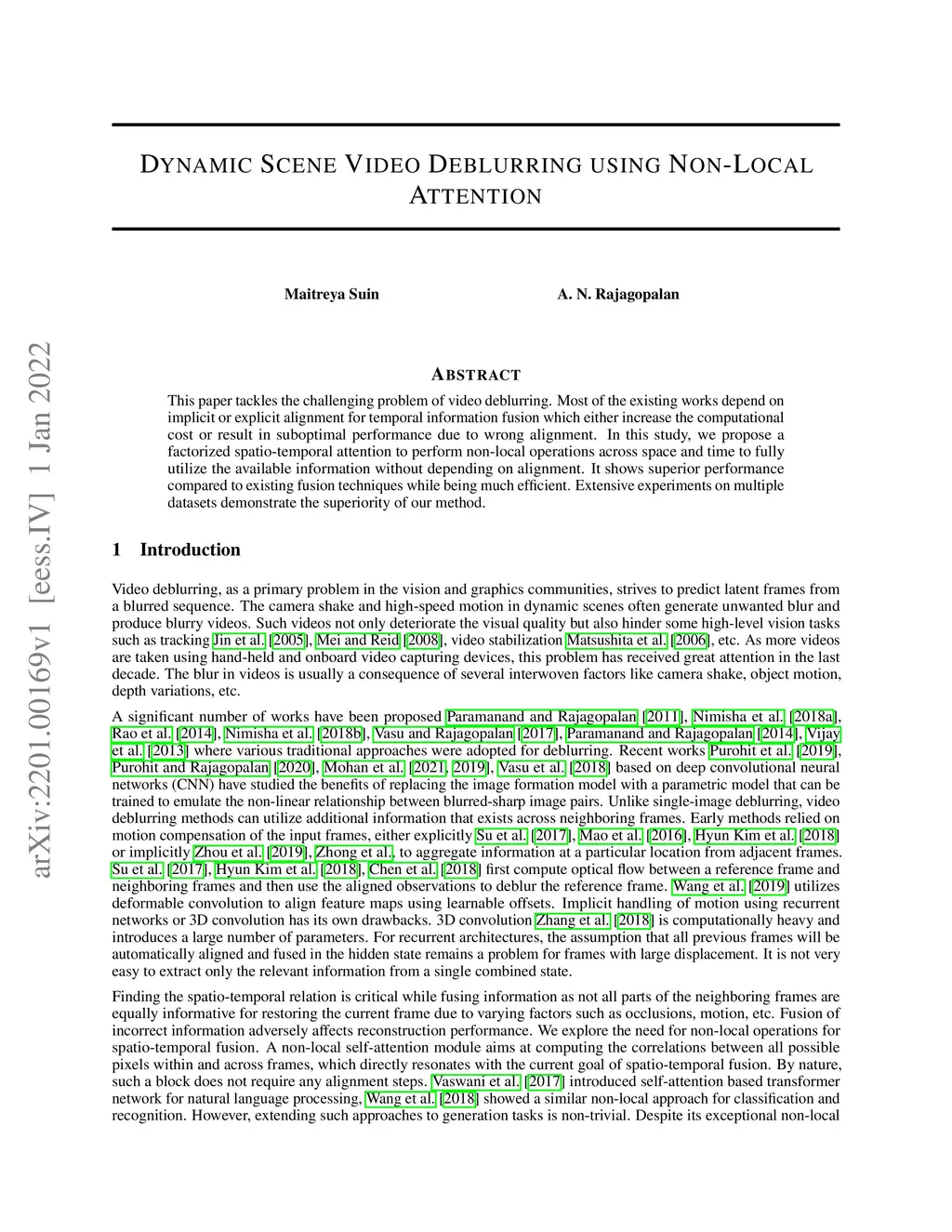 Dynamic Scene Video Deblurring using Non-Local Attention