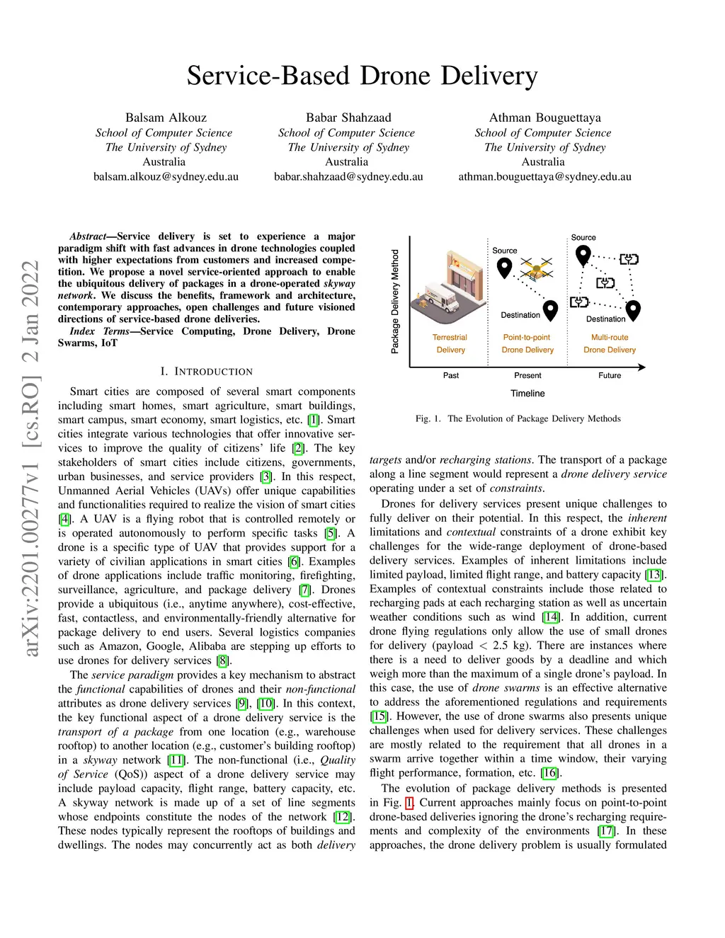 Service delivery is set to experience a major paradigm shift with fast advances in drone technologies coupled with higher expectations from customers and increased competition. We propose a novel service-oriented approach to enable the ubiquitous delivery of packages in a drone-operated skyway network. We discuss the benefits, framework and architecture, contemporary approaches, open challenges and future visioned directions of service-based drone deliveries.