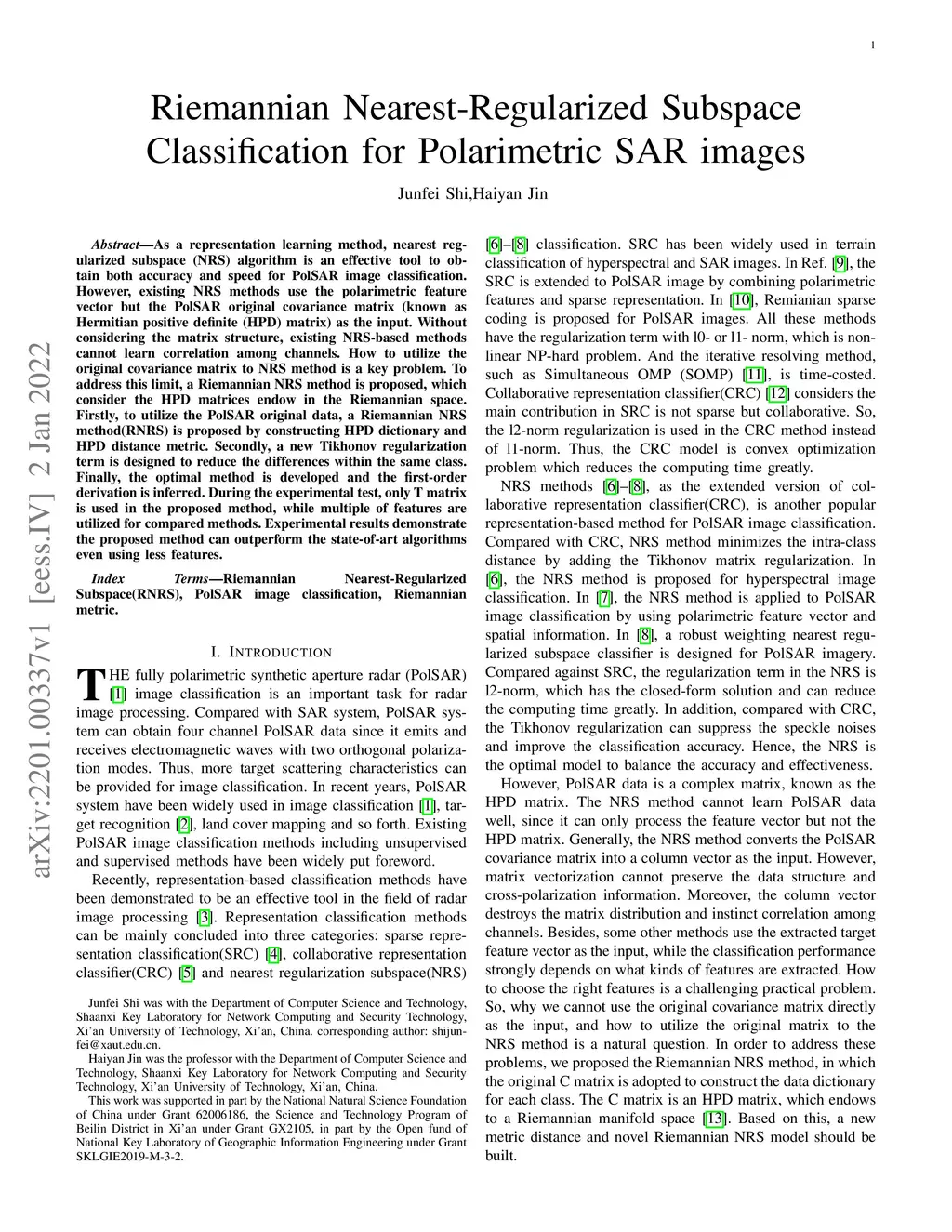 As a representation learning method, nearest regularized subspace(NRS) algorithm is an effective tool to obtain both accuracy and speed for PolSAR image classification. However, existing NRS methods use the polarimetric feature vector but the PolSAR original covariance matrix(known as Hermitian positive definite(HPD)matrix) as the input. Without considering the matrix structure, existing NRS-based methods cannot learn correlation among channels. How to utilize the original covariance matrix to NRS method is a key problem. To address this limit, a Riemannian NRS method is proposed, which consider the HPD matrices endow in the Riemannian space. Firstly, to utilize the PolSAR original data, a Riemannian NRS method(RNRS) is proposed by constructing HPD dictionary and HPD distance metric. Secondly, a new Tikhonov regularization term is designed to reduce the differences within the same class. Finally, the optimal method is developed and the first-order derivation is inferred. During the experimental test, only T matrix is used in the proposed method, while multiple of features are utilized for compared methods. Experimental results demonstrate the proposed method can outperform the state-of-art algorithms even using less features.