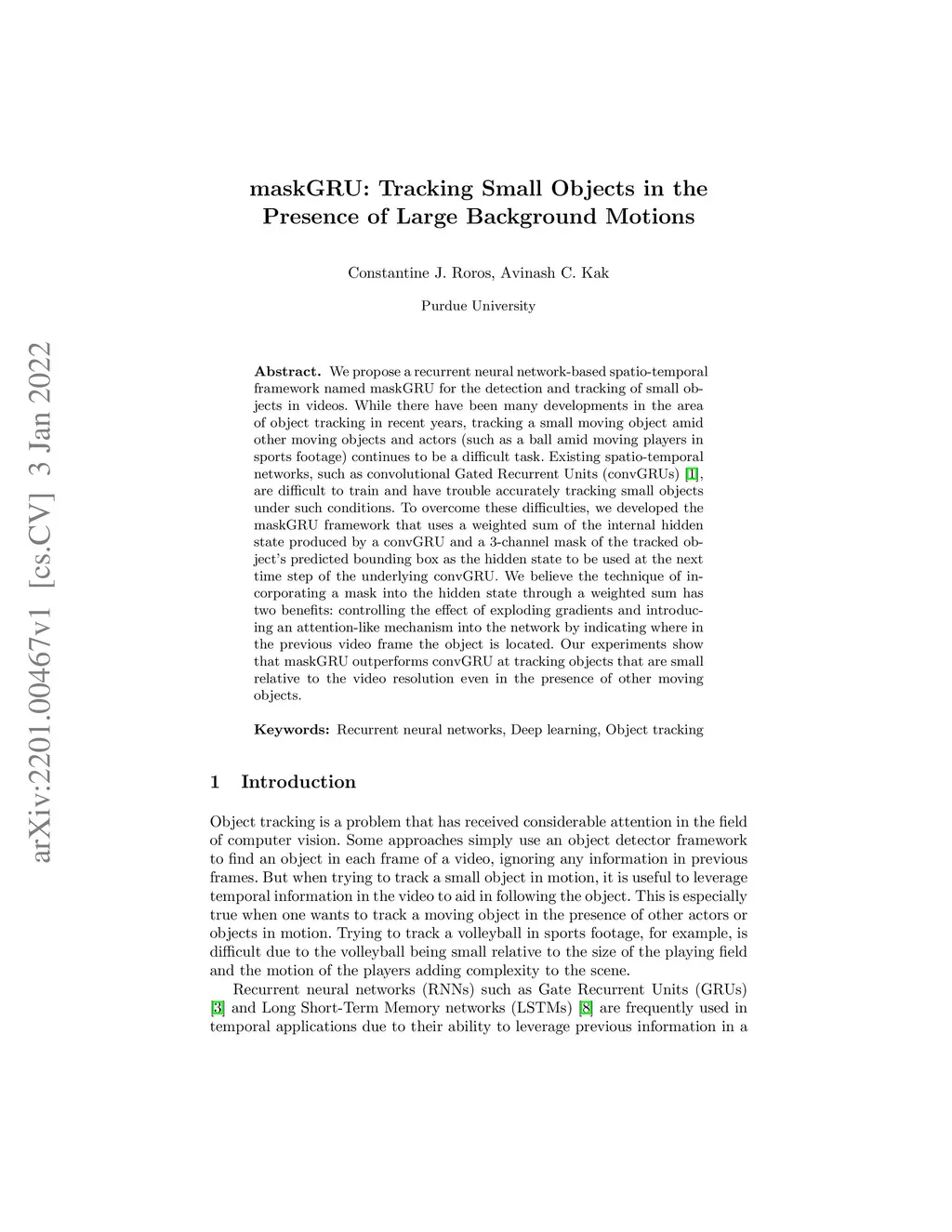 maskGRU: Tracking Small Objects in the Presence of Large Background