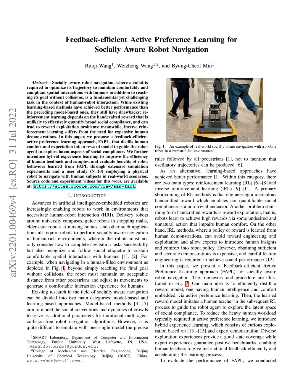 Feedback-efficient Active Preference Learning for Socially Aware Robot
