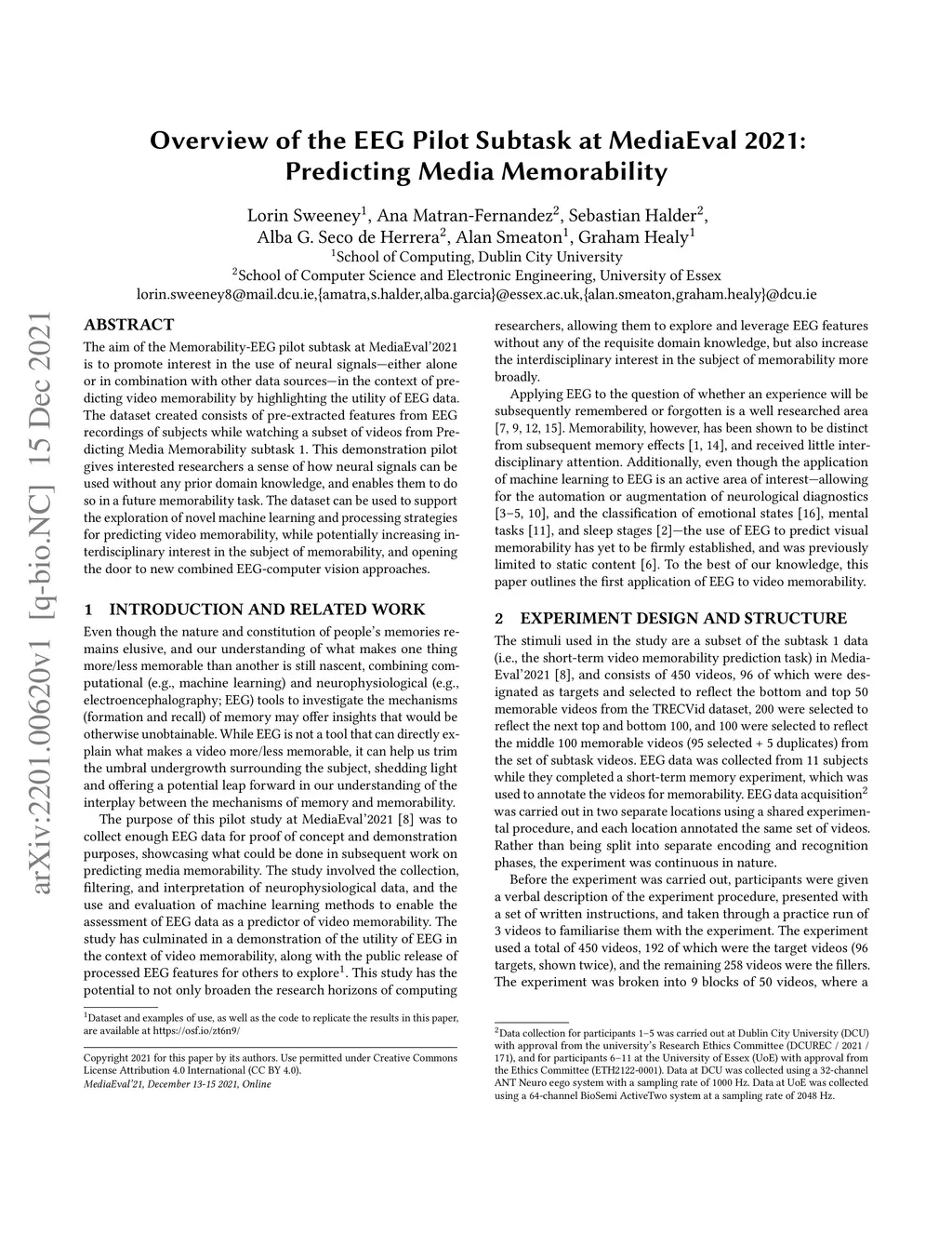 Overview of the EEG Pilot Subtask at MediaEval 2021: Predicting Media