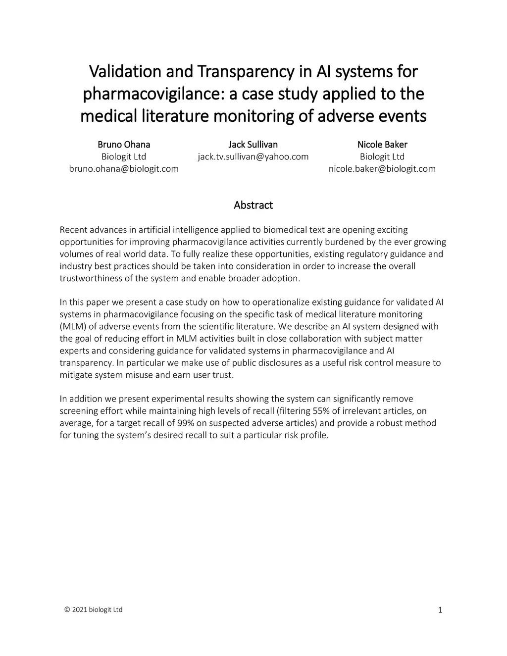 Validation and Transparency in AI systems for pharmacovigilance: a case